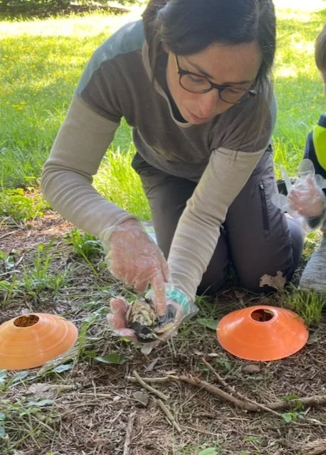 After putting on disposable gloves, we gently and respectfully held the robin and felt the weight of its body in our hands, each saying goodbye to it before placing it back where we’d found it.