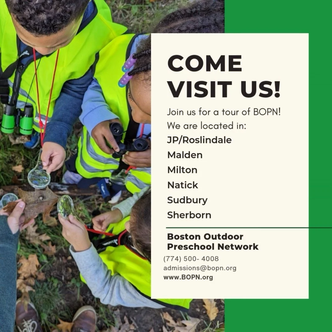 Touring allows you to see our philosophy in practice, chat with our experienced nature educators, and enjoy the forests, gardens, and landscapes that BOPN children explore each day. Dress for the weather, and bring the kids!